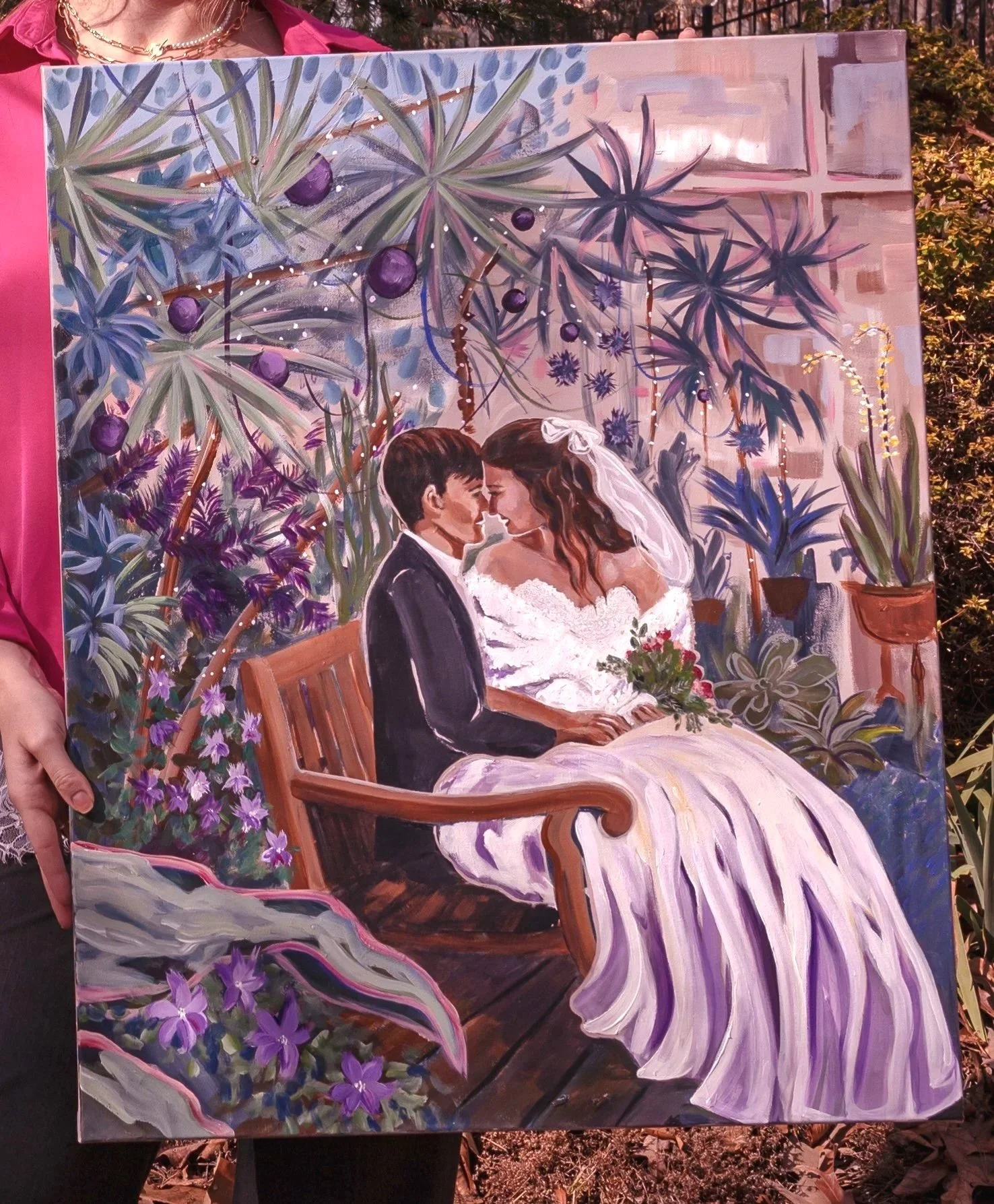 *The price difference reflects the amount of hours needed to achieve each style as the painting will be finished, fine tuned, or even re-worked in areas at the artist studio after the wedding.